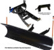 Kit Contents: UTV Snow Plow Blade - Straight Pushtubes Wearbar Skid Feet Installation Hardware and Instructions Blade Features: Snow Plow Blade (19 inches scoop) and leading horizontal supports are formed from a single piece of 11 gauge steel Four 7 gauge ribs run the full height of the blade Three additional 7 gauge horizontal stabilizers support the deepest point of the blade 65° attack angle and over center design ensures snow rolls up and is thrown forward Replaceable 7gauge steel wear bar included with every kit Height and angle adjustable skid feet included 3 Year Warranty Pushtube Features: Impact Resistant Reinforced Pivot Assembly - 2 additional support bars for maximum durability & strength Turn system allows you to easily position your plow in 10 different angles - 0, 12.5°, 25° Simple detachment system with the pull of a pin Structural tube steel cross bar for added lateral rigidity Quick Release Pins included 13.5 inches center to center for plow mount.